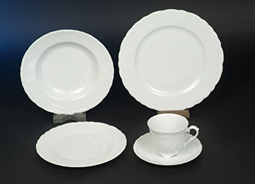 Rocaille Weiss Kaffee Tafel Kombi Service 60 teilig Neu Rund Porzellan Geschirr Set 12 Personen Relief MusterDescription : 60tlg. Kombi Service 12 Personen Rocaille Weiss Ist - Neu - Ovp Sie erhalten : Je 12 Speiseteller 26cm - Suppenteller 22cm - Kuchenteller 21cm - Kaffeetassen 25cl - Untertassen 15cm